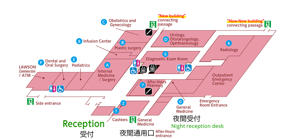 For security reasons, we provide a simplified guide for the outpatient area only.