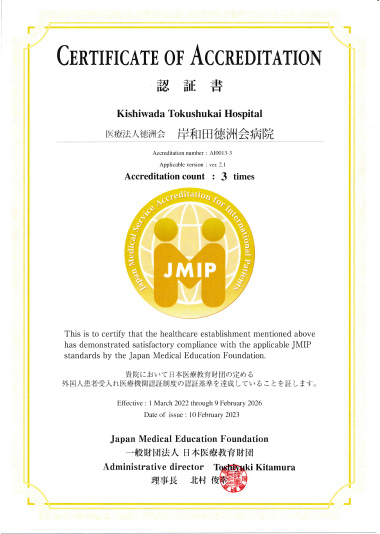 この取り組みが評価され、外国人患者受入れ医療機関認証制度(JMIP)による第4回目の認証を取得しました。